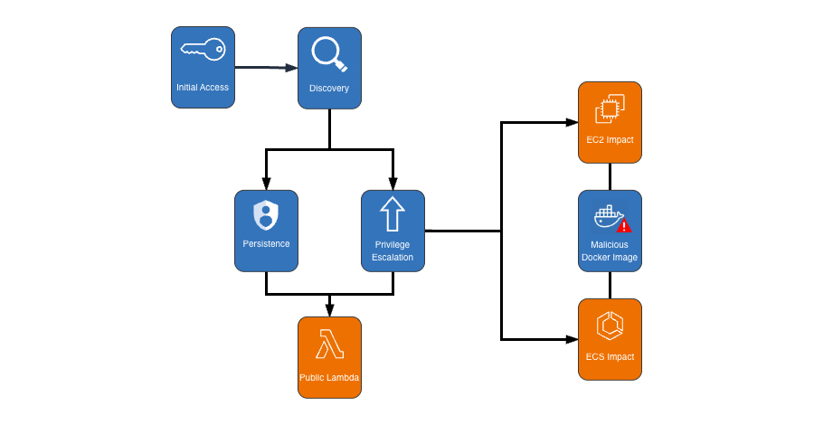 ខ្សែសង្វាក់វាយប្រហារច្រើនដំណាក់កាលចាប់ផ្តើមជាចម្បងជាមួយនឹងគូប្រជែងដែលមិនស្គាល់ ដែលប្រើប្រាស់អត្តសញ្ញាណអ្នកប្រើប្រាស់ IAM ដែលរងការគំរាមកំហែងជាមួយនឹងសិទ្ធិដូចអ្នកគ្រប់គ្រង ដើម្បីចាប់ផ្តើមដំណាក់កាលរកឃើញដែលត្រូវបានរចនាឡើងដើម្បីស៊ើបអង្កេតបរិស្ថានសម្រាប់កូតាសេវាកម្ម EC2 និងសាកល្បងការអនុញ្ញាតរបស់ពួកគេ ដោយហៅ RunInstances API ជាមួយនឹងសំណុំទង់ "DryRun"។