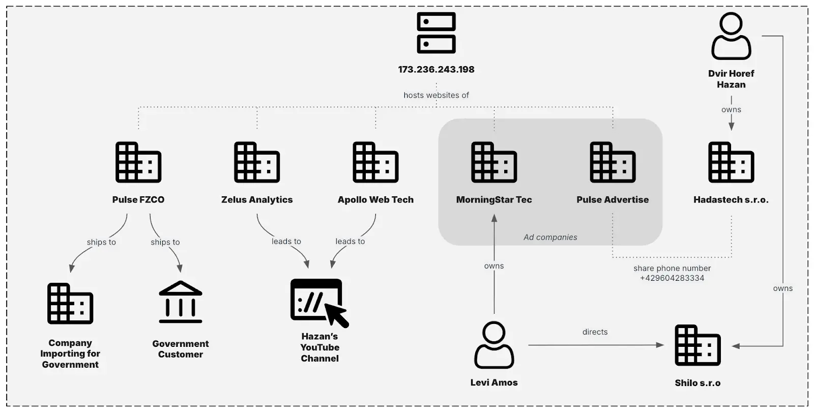 នៅក្នុងរបាយការណ៍ដាច់ដោយឡែកមួយ Recorded Future បាននិយាយថា ខ្លួនបានរកឃើញក្រុមហ៊ុនពីរឈ្មោះ Pulse Advertise និង MorningStar TEC ដែលហាក់ដូចជាកំពុងដំណើរការនៅក្នុងវិស័យផ្សាយពាណិជ្ជកម្ម ហើយទំនងជាមានទំនាក់ទំនងជាមួយវ៉ិចទ័រឆ្លង Aladdin។ លើសពីនេះ មានភស្តុតាងនៃអតិថិជន Intellexa ដែលមានមូលដ្ឋាននៅអារ៉ាប៊ីសាអូឌីត កាហ្សាក់ស្ថាន អង់ហ្គោឡា និងម៉ុងហ្គោលី នៅតែទំនាក់ទំនងជាមួយហេដ្ឋារចនាសម្ព័ន្ធពហុកម្រិតរបស់ Predator។