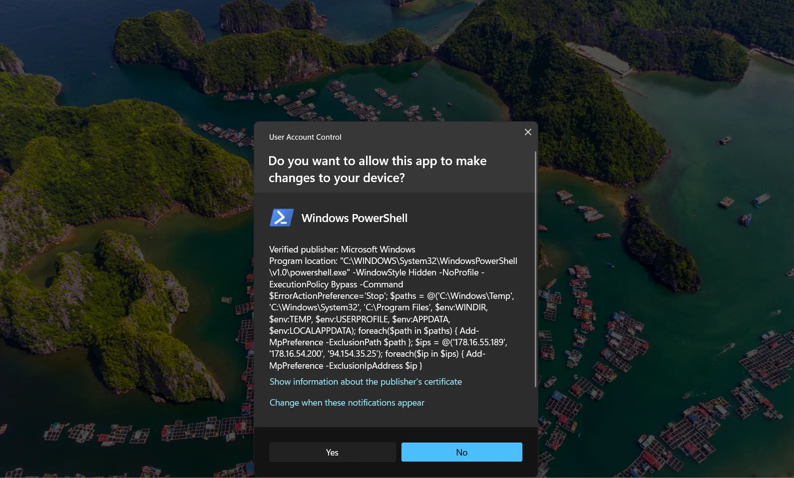 ដើម្បីសម្រេចបាននូវការកើនឡើងសិទ្ធិ មេរោគប្រើ cmdlet Start-Process រួមជាមួយនឹងប៉ារ៉ាម៉ែត្រ "-Verb RunAs" ដើម្បីបើកដំណើរការ PowerShell ជាមួយនឹងសិទ្ធិរដ្ឋបាល និងជំរុញការអនុញ្ញាតជាបន្តបន្ទាប់រហូតដល់វាត្រូវបានផ្តល់ដោយជនរងគ្រោះ។ នៅពេលដែលជំហាននេះទទួលបានជោគជ័យ ស្គ្រីបត្រូវបានរចនាឡើងដើម្បីទម្លាក់បន្ទុកបន្ថែម ដូចជាមេរោគ Trojans ចូលប្រើពីចម្ងាយសាមញ្ញ (RATs) ដែលត្រូវបានសរសេរកម្មវិធីដើម្បីទាក់ទងម៉ាស៊ីនមេ C2 ដែលទំនងជាទម្លាក់មេរោគបន្ថែមទៀត។
