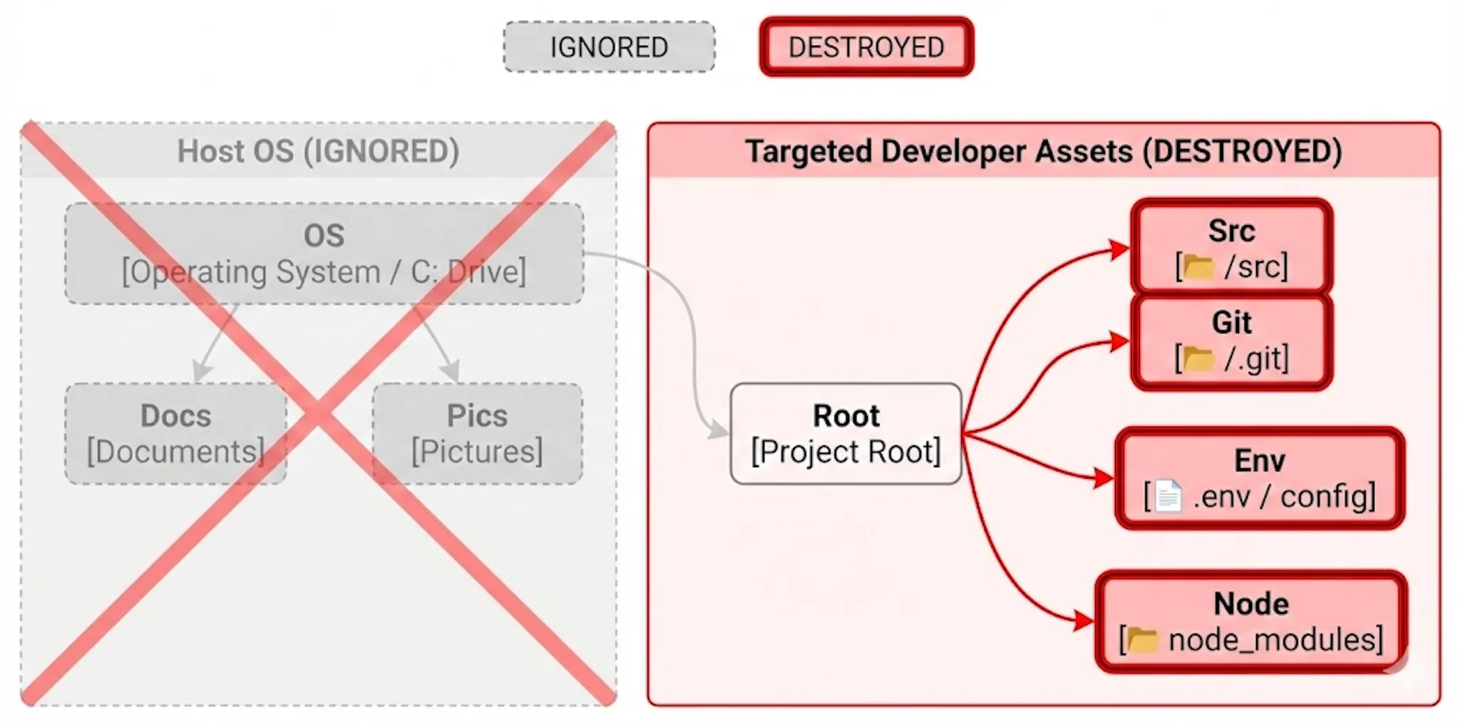"ពួកវាលុបតែអ្វីដែលសំខាន់សម្រាប់អ្នកអភិវឌ្ឍន៍ប៉ុណ្ណោះ៖ ឃ្លាំង Git ថតប្រភព ឯកសារកំណត់រចនាសម្ព័ន្ធ និងលទ្ធផលសាងសង់ CI។ ពួកវាច្រើនតែលាយឡូជីខលនេះទៅក្នុងផ្លូវកូដដែលមានមុខងារផ្សេងទៀត ហើយពឹងផ្អែកលើទំពក់វដ្តជីវិតស្តង់ដារដើម្បីប្រតិបត្តិ មានន័យថាមេរោគអាចមិនចាំបាច់ត្រូវបាននាំចូល ឬហៅដោយកម្មវិធីខ្លួនឯងទេ"។
